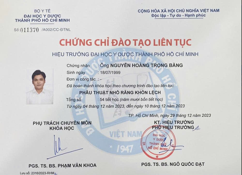 Phẫu thuật nhổ răng khôn lệch – Bộ môn Phẫu thuật Miệng, Khoa Răng Hàm Mặt, Đại học Y Dược TP.HCM (12/2023)