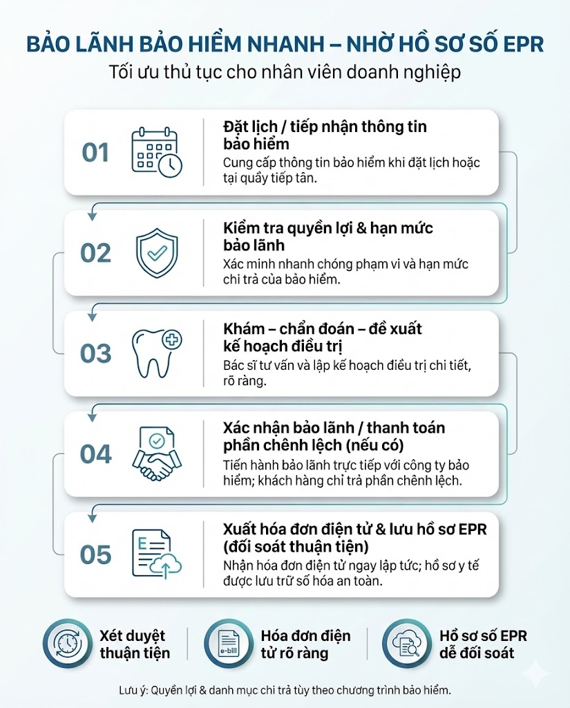 Nhiều doanh nghiệp đã có phúc lợi răng miệng cho nhân viên. Nhưng trên thực tế, có bảo hiểm mới chỉ là điều kiện cần. Điều kiện đủ là: nhân viên được điều trị đúng chuẩn, đúng quy trình, vật liệu rõ nguồn gốc và có hệ thống kiểm soát chất lượng minh bạch.