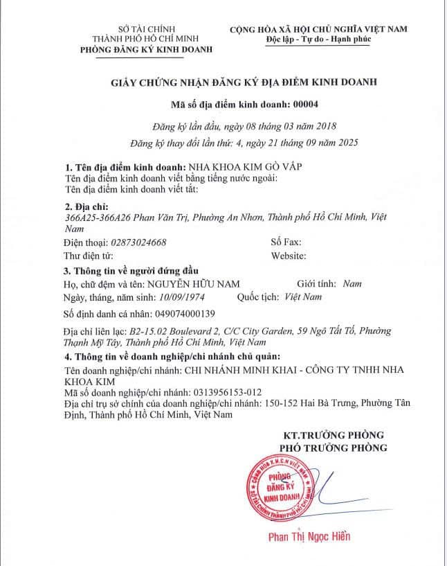 NHA KHOA KIM GÒ VẤP ( THUỘC CHI NHÁNH MINH KHAI – CÔNG TY TNHH NHA KHOA KIM)