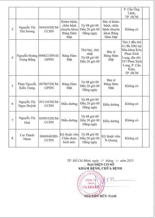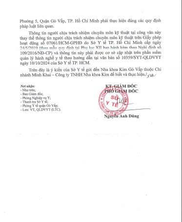 Kèm theo Công văn số 8/2025 ngày 21 tháng 7 năm 2025 của NHA KHOA KIM GÒ VẤP ( THUỘC CHI NHÁNH MINH KHAI – CÔNG TY TNHH NHA KHOA KIM)