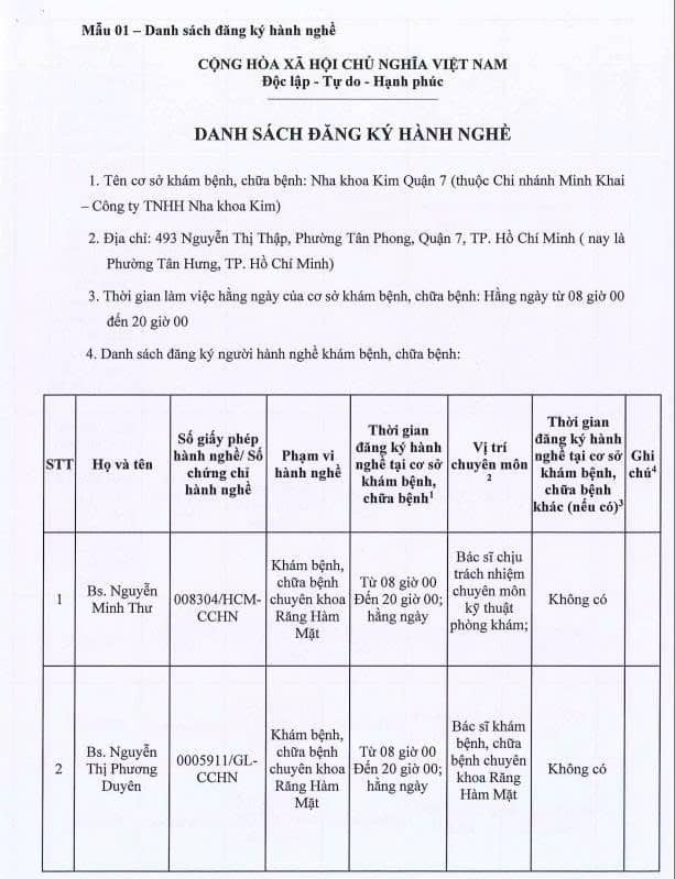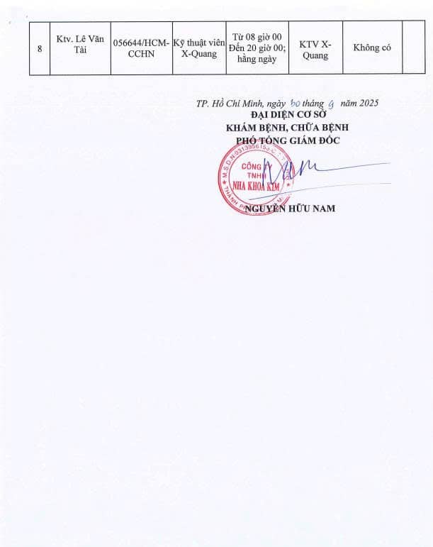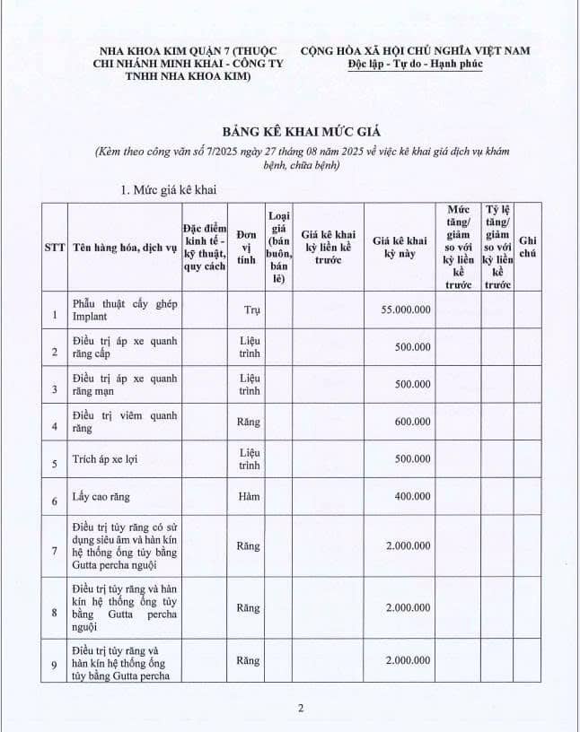Kèm theo Công văn số 7/2025 ngày 27 tháng 8 năm 2025 của NHA KHOA KIM QUẬN 7( THUỘC CHI NHÁNH MINH KHAI – CÔNG TY TNHH NHA KHOA KIM)