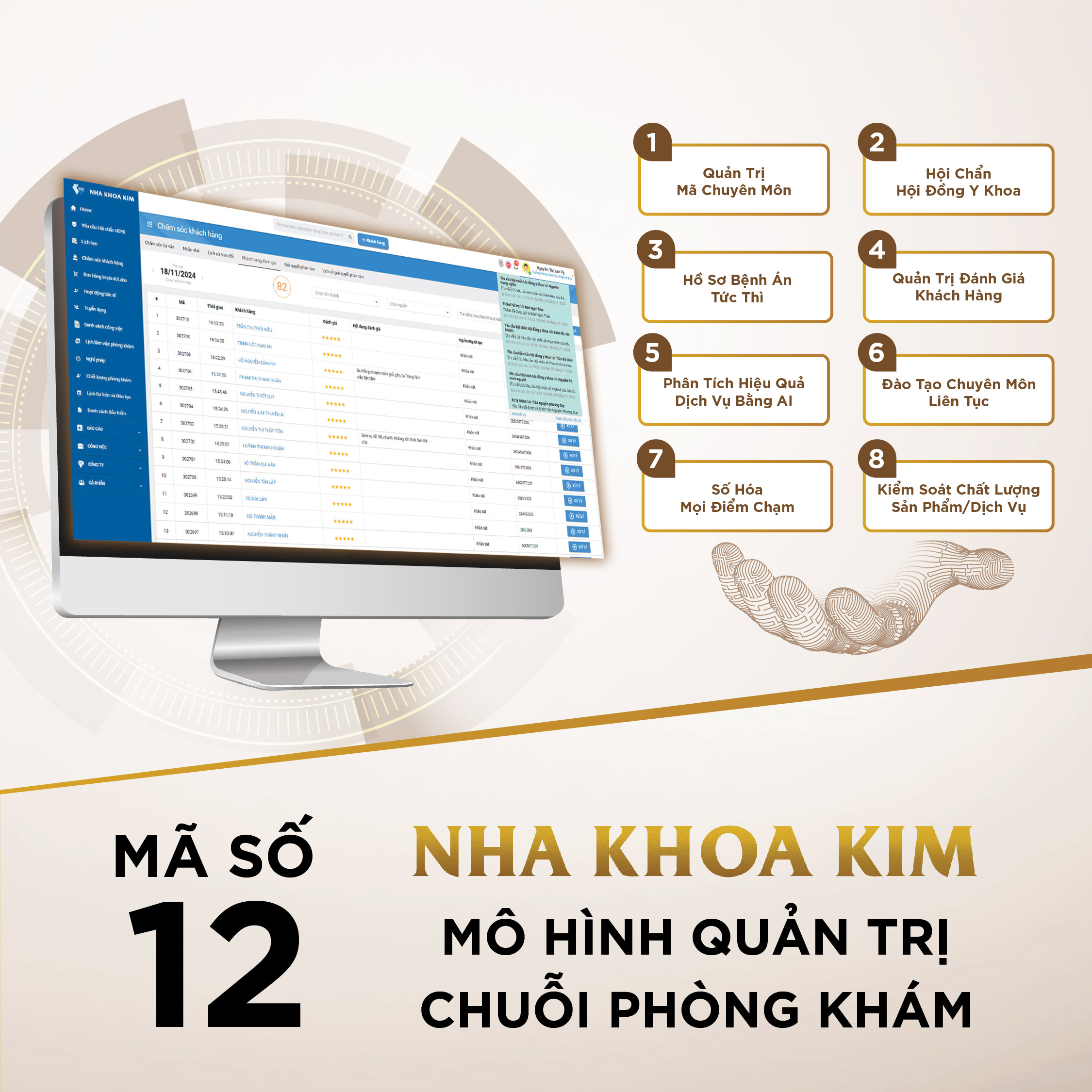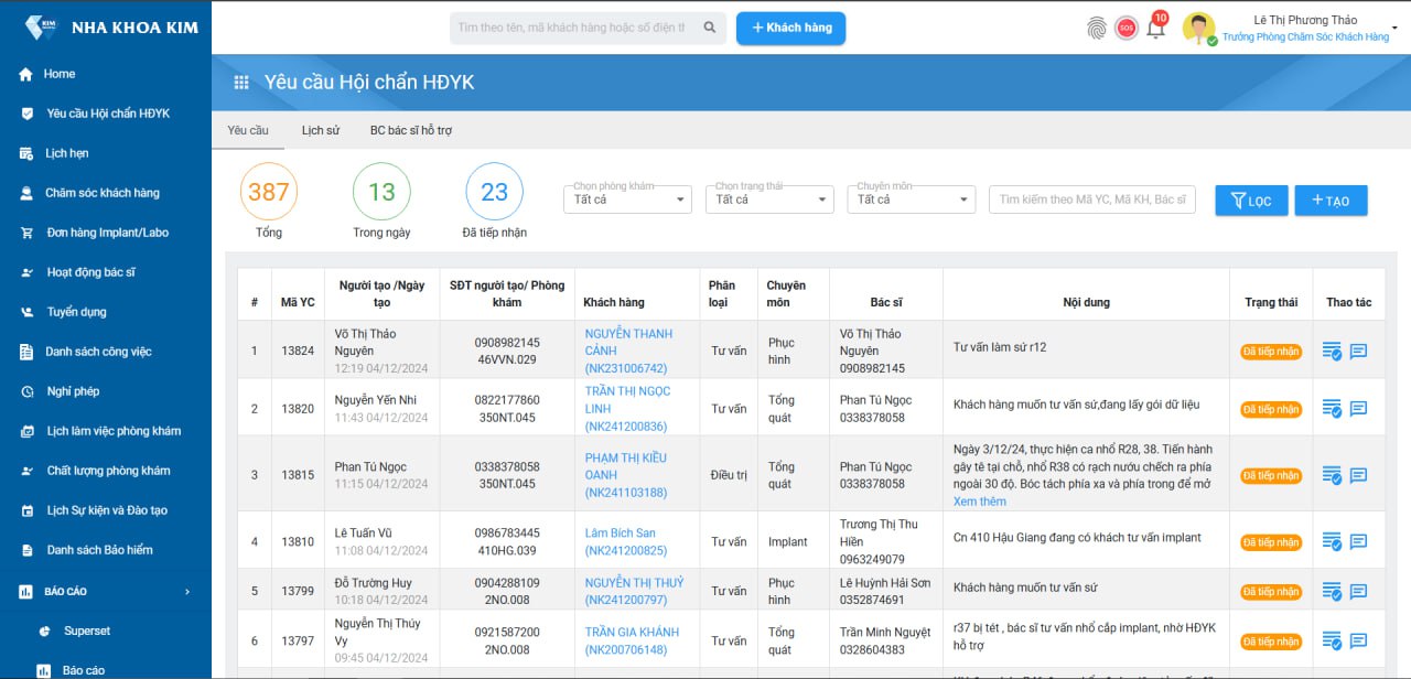 Với sự phát triển không ngừng của Nha Khoa Kim, việc quản lý các quy trình y tế phức tạp như hội chẩn, lịch hẹn, đánh giá chất lượng 15 tiêu chí, báo động thời gian kiểm định, hiệu chuẩn, hết hạn…trên 1 phần mềm và chăm sóc khách hàng trở nên cần thiết để đảm bảo chất lượng dịch vụ và tối ưu hóa quy trình vận hành đáp ứng những yêu cầu của nghị định 96, thông tư 32, luật khám chữa bệnh 2023. Vì vậy, Nha Khoa Kim bắt đầu thử nghiệm mô hình quản trị tại một số chi nhánh của Nha Khoa Kim trước khi triển khai rộng rãi. Các vấn đề phát sinh trong quá trình thử nghiệm được ghi nhận và điều chỉnh để hệ thống hoạt động mượt mà hơn khi triển khai trên quy mô lớn.