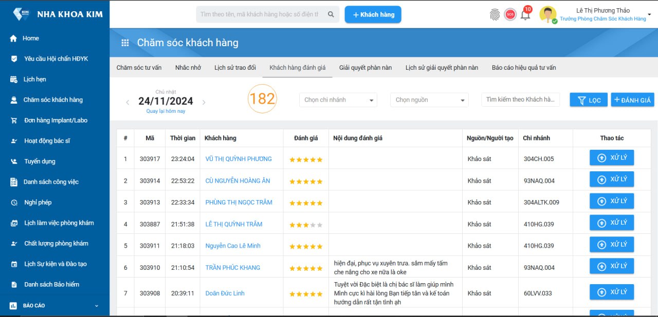 Quản Trị Đánh Giá Khách Hàng: Theo dõi và quản lý tất cả phản hồi từ khách hàng để hỗ trợ kịp thời và nâng cao trải nghiệm dịch vụ.