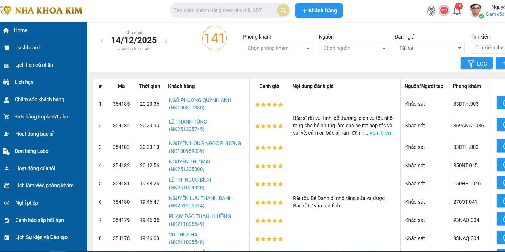 Khách hàng review 5 sao có thời gian thực trong ngày 14/12/2025 tại Nha khoa Kim có số hồ sơ BAĐT rõ ràng, không mua đánh giá , không tạo ảo để lừa dối khách hàng