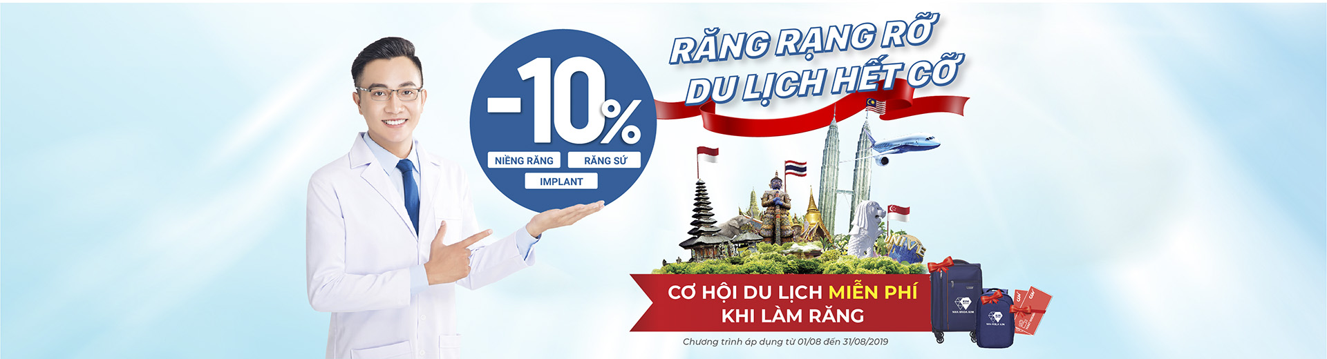 - Giảm giá 10% cho các dịch vụ: niềng răng, trồng răng implant và bọc răng sứ