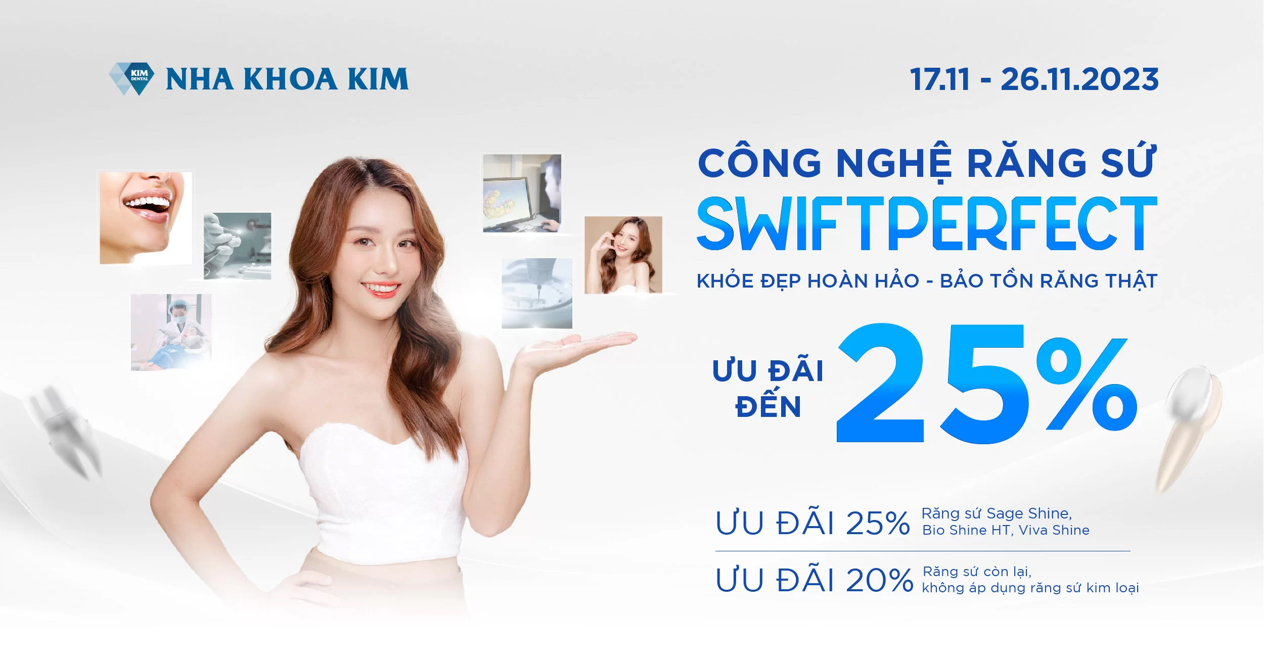 Công nghệ SwiftPerfect là một bước cải tiến của răng sứ thẩm mỹ giúp khách hàng sở hữu hàm răng đẹp tự nhiên một cách an toàn, bảo tồn tối đa răng thật, đảm bảo răng chắc khoẻ suốt thời gian sử dụng.