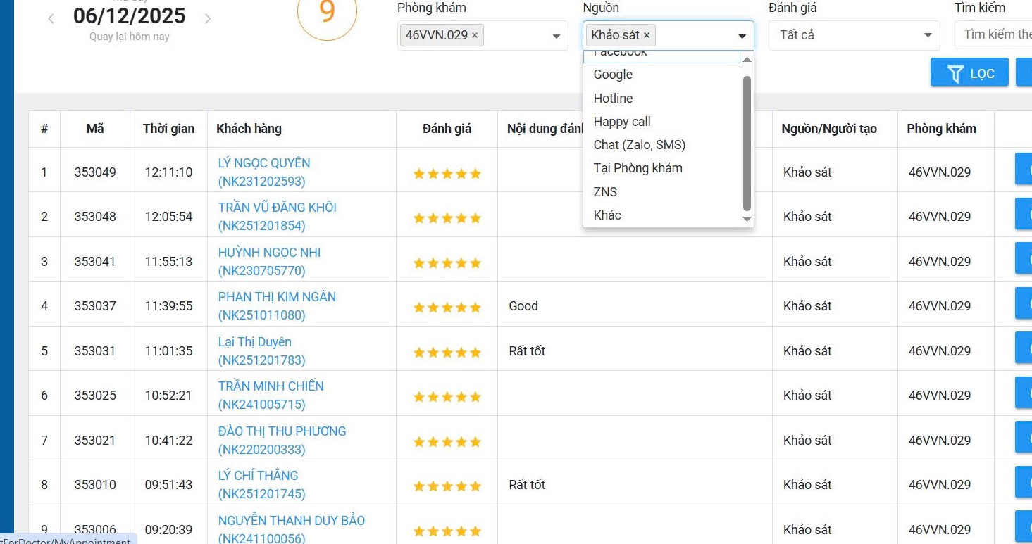 Hệ thống review Nha Khoa Kim Thủ Đức có khả năng lọc đa nguồn: Facebook, Google, Hotline, Happy call, Chat (Zalo/SMS), khảo sát tại phòng khám, ZNS, nguồn khác…→ giúp quản trị trải nghiệm đồng bộ và phát hiện điểm cần cải tiến nhanh.